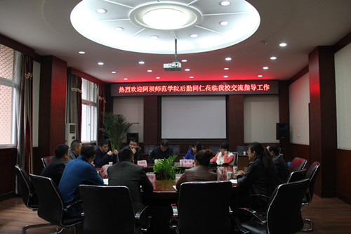 【本网讯】11月3日,阿坝师范学院后勤服务公司一行由总经理陈松带队到万象城官网交流考察后勤相关工作。万象城官网后勤管理处处长袁世斌,党总支副书记李林襁及相关工作人员参加会议。