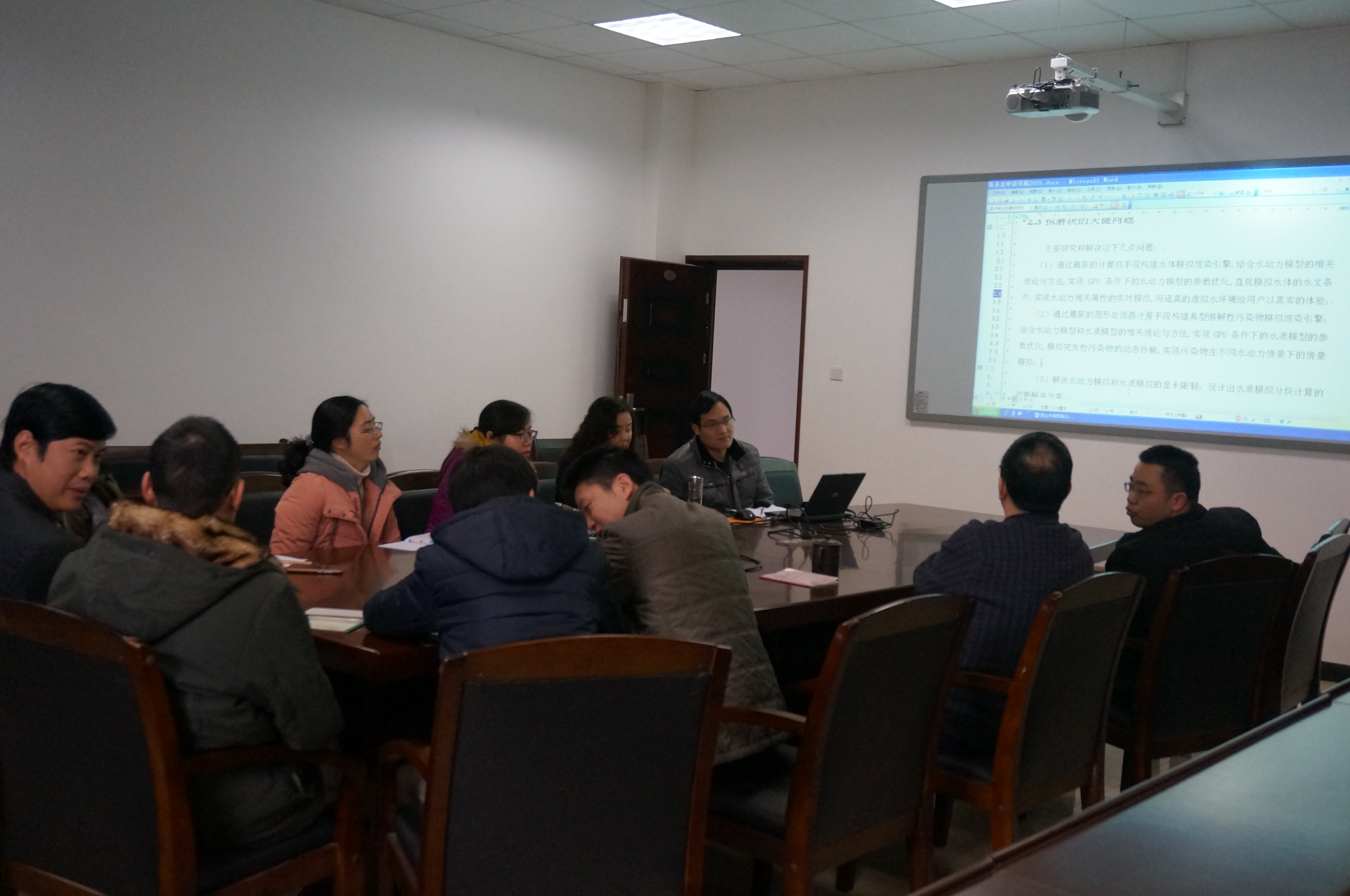 申报人员按照各自的研究思路从项目组成员的建立、项目标题、摘要、选题背景、研究正文内容及创新点等方面展开了汇报。