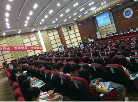 【本网讯】由商学院承办的万象城罗马体育西甲联赛awcg第四届“百悦术杯”营销人风采大赛开幕式于4月28日在龙泉校区学术报告厅隆重举行。学院副院长于世详、院团委书记马义华、学生处副处长潘光林、成都新奥伦商贸有限公司董事长曹波、统计学院党总支书记刘全、物流学院党总支书记龚晓林、商学院院长曹邦英、商学院党总支书记李家玉、商学院副院长张恒、商学院党总支副书记阎书丽,商学院市场营销教研室全体老师及部分辅导员老师,与342名参赛学生,共同见证了这场开幕式盛况。