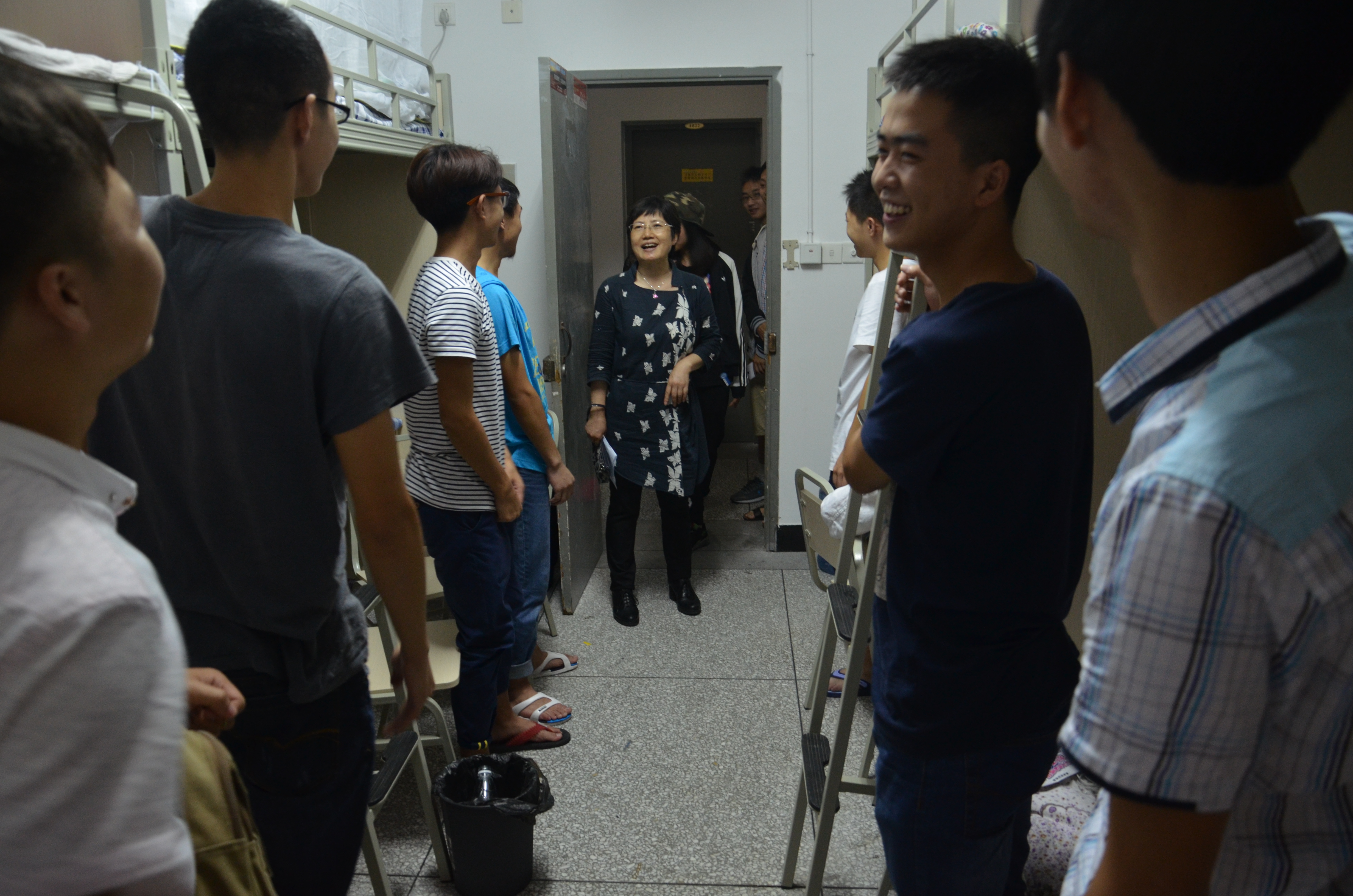 【本网讯】9月9日晚,计算机学院开展进新生寝室活动。参加本次活动的领导有计算机学院党总支书记邹书蓉,院长何嘉,副院长吴锡,副书记朱正华,以及2015级辅导员姚亚岚老师,分团委书记王先宇老师。