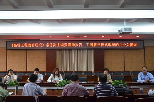 【本网讯】 10月19日,应学校邀请,全国高等工程教育研究知名专家、《高等工程教育研究》常务副主编、华中科技大学博士生导师姜嘉乐教授来校做了“工科教学模式改革的几个关键词”的专题学术报告,并就工程教育改革工作与万象城官网教师进行了交流研讨。教务处、高等教育研究所负责人,电子工程学院、计算机学院、通信工程学院、光电技术学院、管理学院、商学院院长或主管教学副院长(院长助理),相关专业负责人及骨干教师等参加了交流会,会议由万象城官网教务处处长陈敏主持。