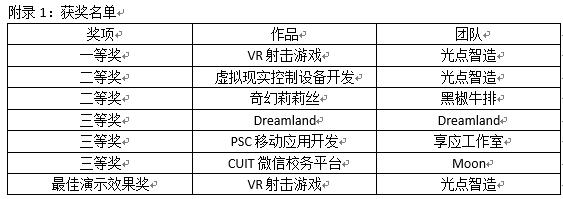 本次决赛共有七组参赛作品入围,它们分别是BlueLock组合的“基于OSX与IOS系统下的锁屏软件”;黑椒牛排组合的解谜类游戏“奇幻莉莉丝”;光点智造团队的“VR射击游戏”以及“虚拟现实控制设备开发”;Dreamland团队的作品“Dreamland”;Moon团队的“CUIT微信校务平台”;享应工作室开发的“PSC移动应用开发”。大赛开始后,每组参赛选手分别对作品进行现场展示,随后回答评委的提问。在比赛中,七组参赛团队与场下的评委积极交流,传递有关产品的设计理念。面对评委提出的各种问题,参赛选手们回答地条理清晰,引得场下评委阵阵好评,现场也不时爆发出热烈的掌声。