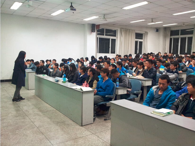 汤蓉还提及了一些存在于大一新生中常见的问题,例如电脑携带的好坏处、学生对自身专业是否感兴趣、大一学生应养成的好习惯、以及学会自我思考,并依次作出了解答,给在场学生以启发。