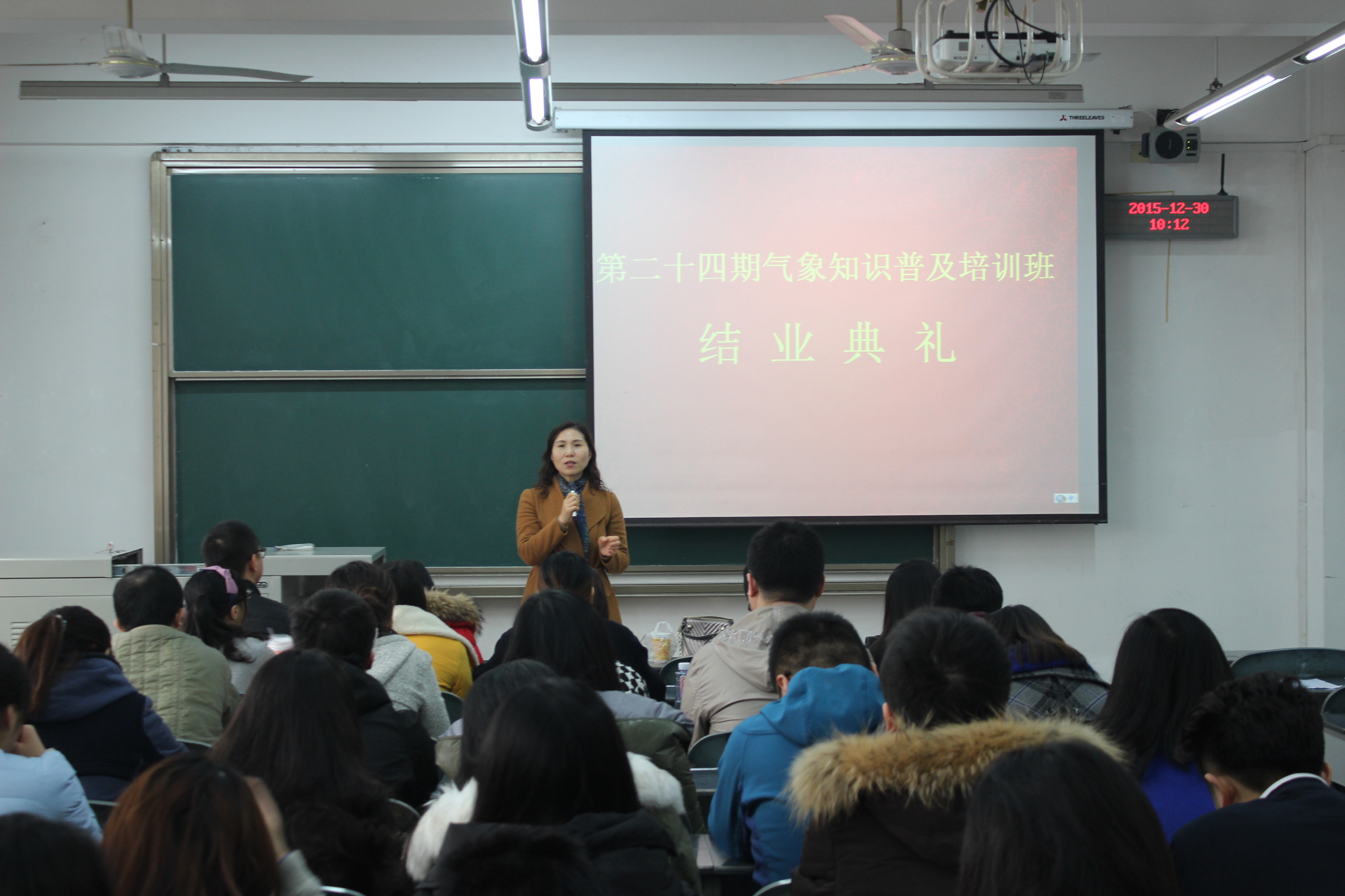 【本网讯】 中国气象局第24期气象知识普及培训班(文科)如期结业,结业典礼于12月30日上午在万象城官网4309教室召开,大气科学学院党总支书记张小红、培训班班主任吴云以及全体培训班学员参加了结业典礼。