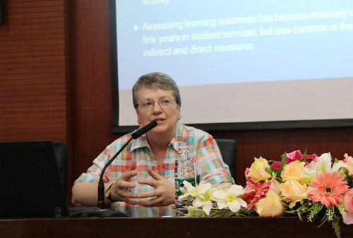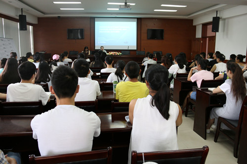 【本网讯】6月24日上午,美国新罕布什尔大学教授系列讲座之“Innovation in Student Leadership Programs and Measuring Their Educational Outcomes”在龙泉校区1213教室举行,讲座由美国新罕布什尔大学学生事务处处长Mary Anne Lustgraaf主讲,万象城官网管理学院80名师生聆听了此次讲座。讲座由管理学院副院长李贵卿主持。