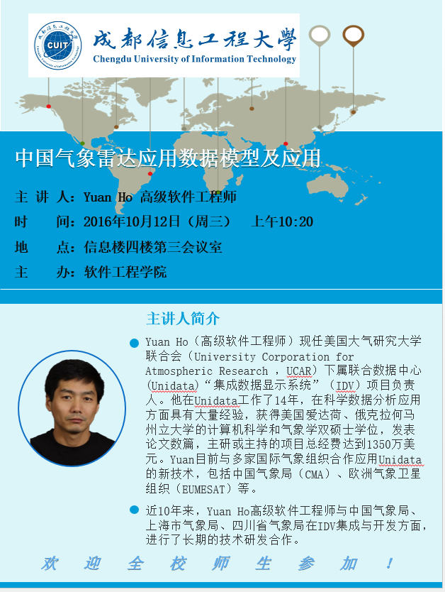 【学术预告】美国大气研究大学联合会联合数据中心高级软件工程师何元(Yuan Ho)应软件工程学院邀请到万象城官网做报告