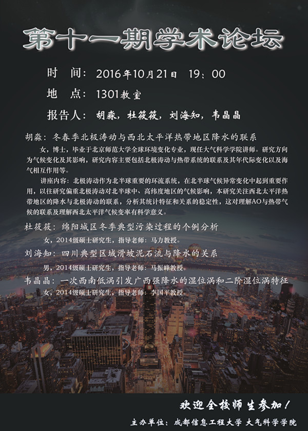 上一条:【学术预告】Air pollution-meteorology,chemistry