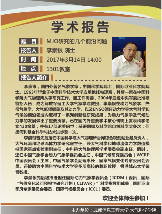 上一条:【学术预告】关于年代际气候变化的机制问题