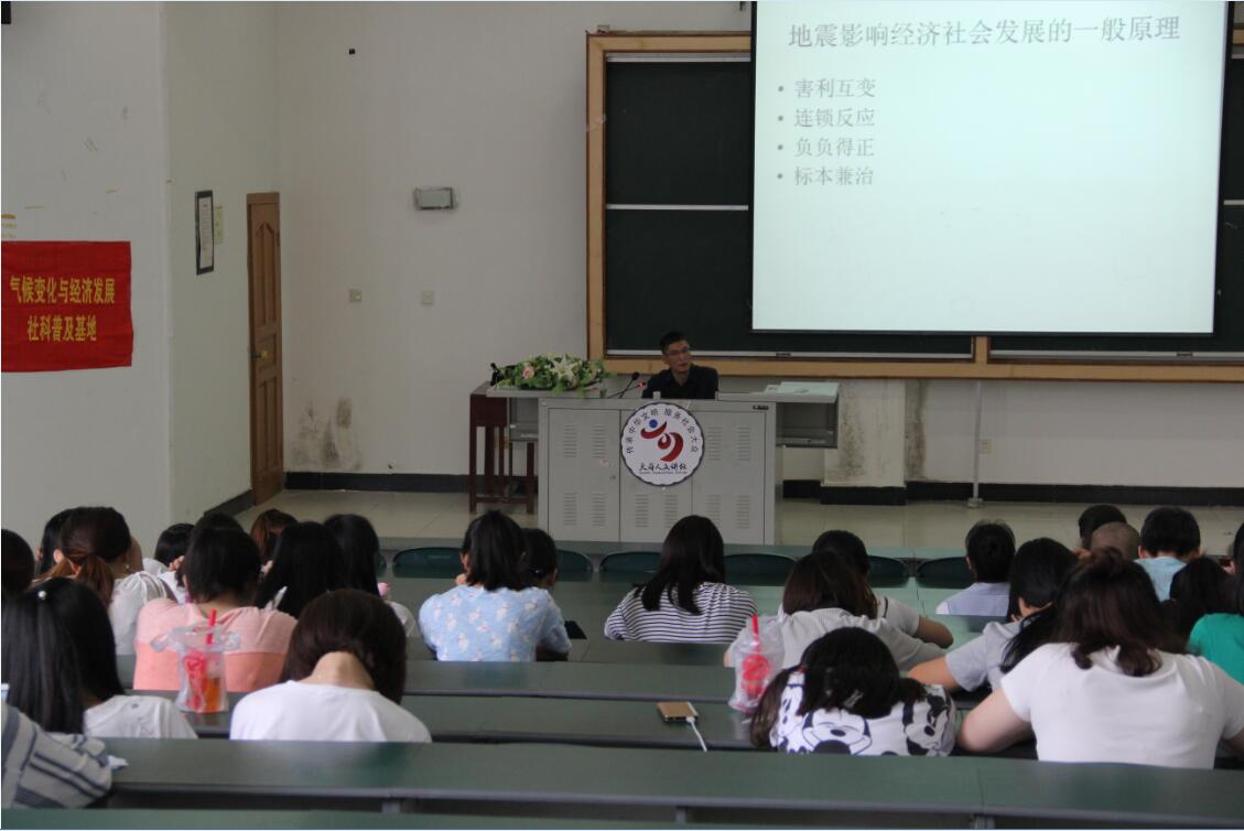 【本网讯】6月2日下午,应万象城官网气候变化与经济发展基地邀请,四川省社会科学院震灾研究中心秘书长、副研究员、经济学博士曹瑛于龙泉校区3101教室,为商学院的同学们作题为《地震灾害经济学理论与实践》的讲座。曹瑛博士以他多年来的自身研究成果和经验,对地震灾害经济学相关概念进行阐释,梳理了地震影响经济社会发展的一般原理和特殊规律,分享了生活中的一些典型案例,并和同学们一起探讨了地震灾后恢复重建规律和如何有效地进行防灾减灾。