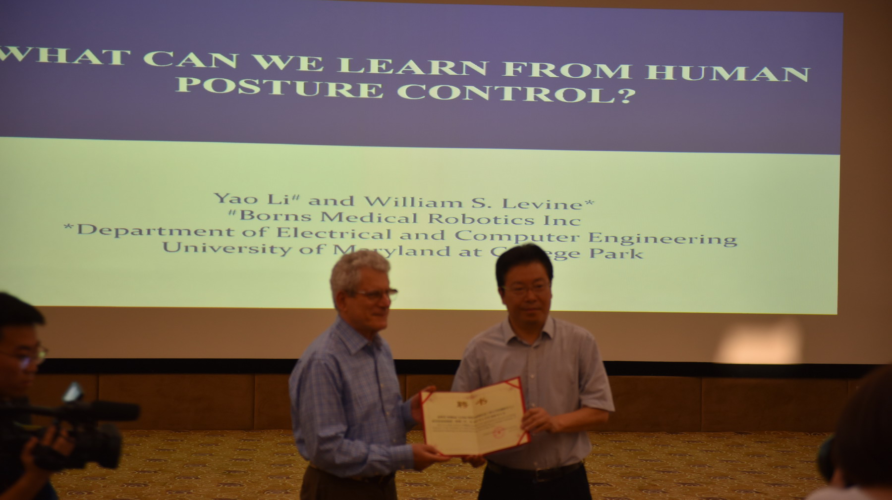 【本网讯】6月8日上午,机器人与智能系统国际联合研究院开展了第八次国际学术交流活动。美国马里兰大学电子计算机工程系终生教授、世界优化控制理论大师、国际IEEE协会终生院士(Life Fellow)、千年奖章(Millennium Medal)获得者William Levine教授受邀在万象城官网国际会议厅为参会师生举办了一场关于“人体姿态控制”的精彩讲座。讲座前,学校党委书记周激流教授为William Levine颁发了控制科学与工程学科客座教授聘书。