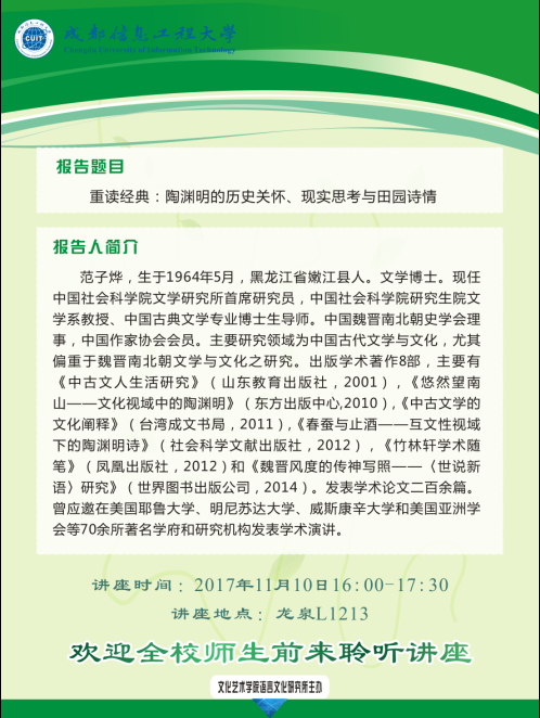 【学术预告】重读经典:陶渊明的历史关怀、现实思考与田园诗情