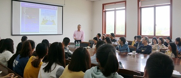 冯伍虎为学校师生作了题为“An overview of Atmospheric Research Activities: Weather, Climate, Chemistry, Aerosol & Crops”““Stratospheric polar ozone depletion studies with a chemical transport model TOMCAT/SLIMCAT”“Mesospheric metal layers studies with a coupled chemistry-climate model”等学术报告,较为系统地介绍了利兹大学地球与环境学院在天气气候、化学、气溶胶等大气科学研究领域的主要方向和成果,报告分别聚焦在平流层臭氧损耗的研究和中层大气金属层研究,包括大气化学模式的发展和应用和对科学问题的研究等内容。