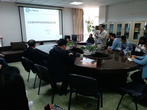 钟守铭向大家介绍了“忆阻器”的起源,并提出该系统是不连续的,从而就“忆阻器神经网络系统的稳定性”问题展开了讨论,先后用了“变系数微分方程”、“扰动系数的微分方程”和“切换微分方程”三种方程去近似逼近原系统,将讨论原系统的稳定性问题转为讨论我们所熟知的微分方程的解的存在稳定性问题。