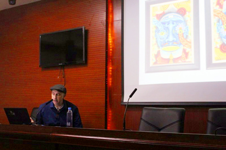 【本网讯】5月2日晚上,来自美国艺术中心设计学院的Clayton教授应邀到万象城官网龙泉校区一教二楼会议室举办了一场题为“插画艺术”的学术讲座。文化艺术学院视觉传达设计数字游戏动漫艺术全体师生100余人聆听了讲座。讲座由数字游戏动漫艺术教学团队负责人禹然主持。
