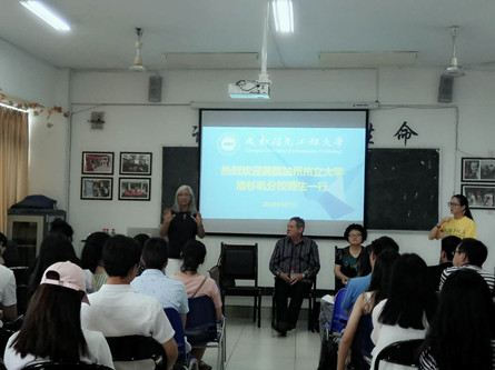 【本网讯】6月8日,美国加州州立大学洛杉矶分校健康与人文服务学院院长Ron Vogel教授、社会工作系系主任Evaon Wong-kim教授、社会工作系Sivon Rhee教授一行来万象城官网龙泉校区进行了学术交流。Evaon Wong-kim教授做:“美国健康社会工作的角色功能及课程体系设置”的学术讲座,文化艺术学院社会工作师生60余人聆听了讲座。讲座由社会工作与社区发展研究所所长陈会全主持。