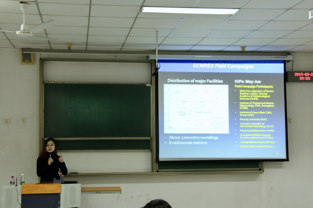 【本网讯】3月22日上午,中国气象科学研究院二级研究员,灾害天气国家重点实验室首席研究员罗亚丽应大气科学学院邀请,在1107教室作题为《The Southern China Monsoon Rainfall Experiment (SCMREX)》的学术报告。报告由大气科学学院副院长张宇主持,大气科学学院师生积极参加。