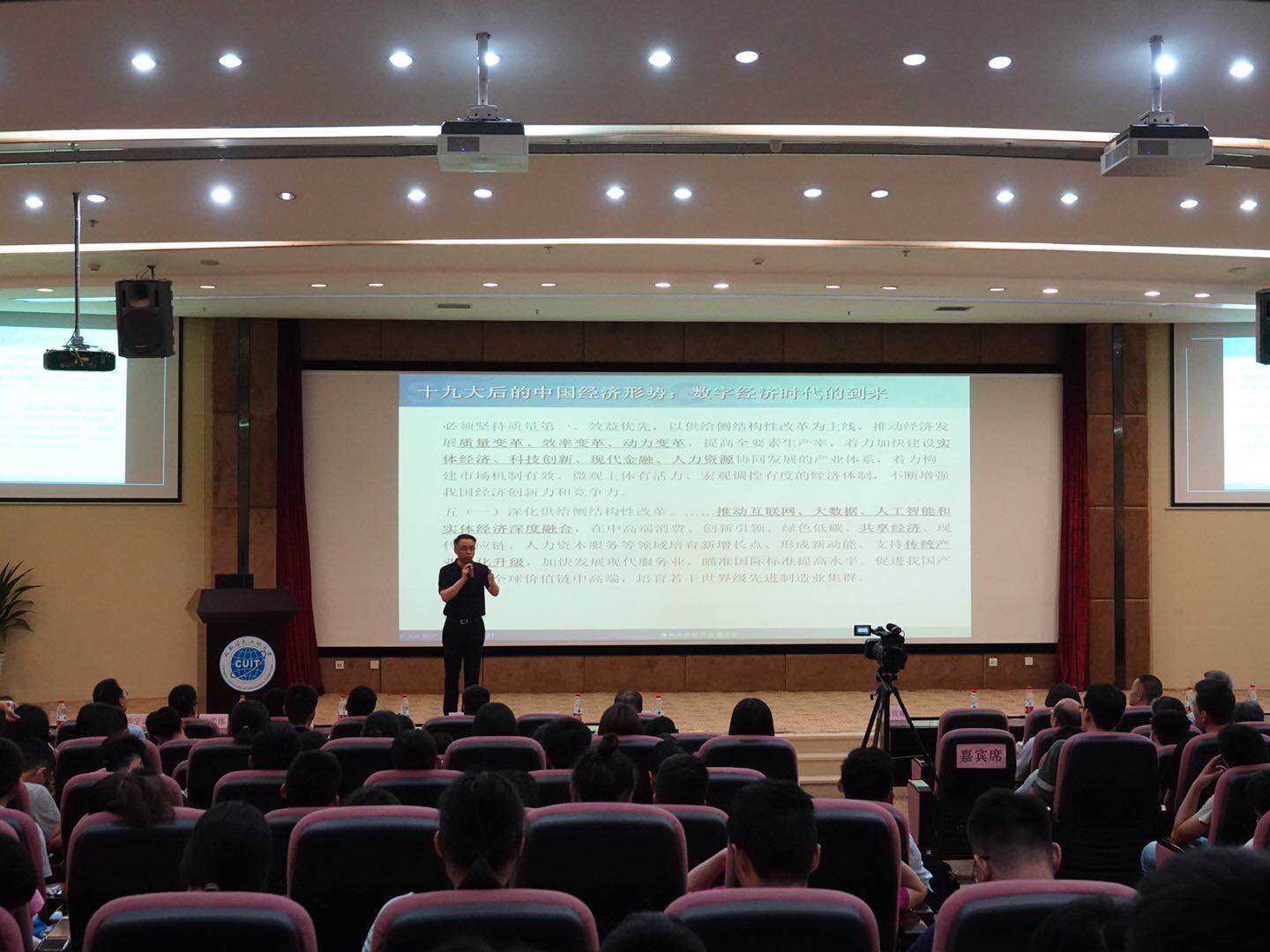 【本网讯】5月21日,应万象城官网启迪科技学院邀请,清华大学互联网产业研究院院长朱岩教授在国际会议厅为师生作了题为“数字经济与产业转型”的学术讲座。学术讲座由学校副校长何建新教授主持。企业界嘉宾、全校师生近300人聆听了专题讲座。