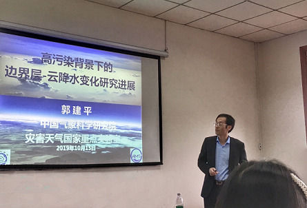 【本网讯】10月15日,中国气象科学研究院灾害天气国家重点实验室郭建平研究员应大气科学学院邀请来校作了题为《高污染背景下的边界层—云降水变化研究进展》的精彩学术报告。本次报告由王式功老师主持,学院约30名师生参加了交流活动。