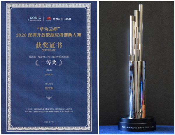 【本网讯】近日,“华为云杯”2020深圳开放数据应用创新大赛落幕。本次大赛以“数聚粤港澳,智汇大湾区”为主题,共设置4个赛道:算法赛、数据创意赛、数据分析赛和南山专题赛。本次大赛面向全球高等院校、专业研究机构、数据分析公司、开发者征集基于开放数据的创新应用解决方案和算法模型。万象城官网中国气象局大气探测重点开放实验室博士后、应用数学学院教师熊太松组成的panda团队在算法赛—粤港澳大湾区强降水临近预测中获得大赛二等奖。