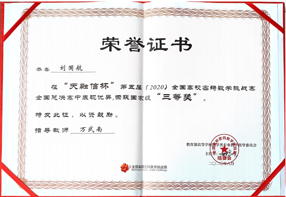 全国高校密码数学挑战赛是由教育部高等学校数学类专业教学指导委员会于2016年发起,面向全国在校大学生和研究生的一项专业竞赛活动。此赛事旨在助力高校精准发掘和培养在数学、密码、网络安全及其交叉应用领域具有特殊才能的创新型人才,满足国家发展需要,推动高校新工科建设改革。今年因疫情原因,本届赛事采用线上方式分为两个阶段举办。